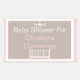 Vinheta Retangular de Chá de fraldas Chandelier Elegante A Rosa. Estes chás de fraldas adoráveis celebram uma menina com uma rosa claro, fundo branco e castanho decorado com um berço branco e um candelabro.