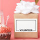 Nome de etiqueta Voluntário Vazio Preto com o título "voluntário" na fonte sans serif preta e negrito com espaço de vazio para o seu nome em fundo branco com borda preta. Perfeito para estagiário, tripulação, funcionarios, grupo, equipe e muito mais.