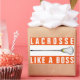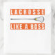 Etiquetas de presentes de Lacrosse, favoritos para festas e selos de envelopes com Lacrosse, como uma citação de Boss e design de pau de lax feminino, em fundo laranja.