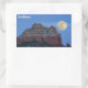Adesivo retangular com imagem de uma pintura aquosa de uma ascensão superluana sobre os Crimson Cliff, formação de rocha vermelha próxima à cidade de Sedona, Arizona, e cabeça de Snoopy Rock, formação predominante e reconhecível de rochas vermelhas. Consulte cartão postal correspondente. Veja toda a coleção de Arizonas Sticker na seção CARDS, POSTCARDS & STICKERS.