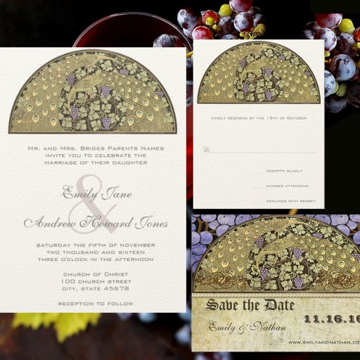 Vineyard Art Nouveau Peacocks Grapevine Purple Grapevine com casamentos Dourados de pântanos