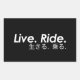 O adesivo clássico do Live and Ride, mas com um pouco de inspiração japonesa. Mantenha-se firme, bicicleta, carro, o que quer que partilhe o amor!