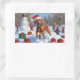 Adesivo Retangular Vizsla correndo em neve com chapéu de Natal