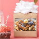 Waffles com xarope e manteiga no topo.