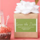 Whimsy Salve os adesivos de Data em verde-oliva e branco com um design de tipografia de script simples e divertido. Essas tendências salvam os adesivos de data são fáceis de personalizar com seus detalhes de casamento. Para obter mais opções de personalização, clique no botão Personalizar Ti.