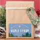 Para um rótulo sofisticado que não parece comercial, não olhe mais além do adesivo retangular de xarope de bordo tradicional. "Maple Syrup" está escrito em uma fonte subestimada de "neve" abaixo do nome de sua empresa com um fundo verde-escuro sobre um céu azul. Junto com uma bonito folha de açúcar em ouro iridescente, este rótulo irá separar seu xarope dos concorrentes. Perfeito para as bancas de fazenda, mercados de fazendeiros e compras de presentes locais.