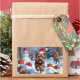 Adesivo Retangular Yorkshire Terrier em neve com chapéu de Natal