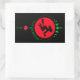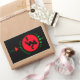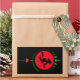 Design de Yule vermelho e verde com luas, bruxa sobre uma vassoura decorada com luzes cintilantes e um presente.