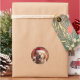 Retriever ouro num Pai Natal com adesivos de Natal.