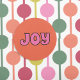 Este adesivo redondo apresenta a mensagem "JOY" soletrada em letras cor-de-rosa no estilo retrô contra o fundo laranja. Estes autocolantes são perfeitos para decorar presentes de Natal ou usar como selos de envelopes nos cartões de Natal.