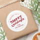 Um simples adesivo moderno e retrô que diz "Feliz Natal" em uma fonte retrógrada. O nome na parte inferior é um modelo que pode ser mudado para se adequar à sua família, empresa ou qualquer outro ditado que você queira.