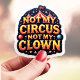 Fique fora do drama com este Retro Não Meu Circo Não Meu Adesivo de Palhaço no estilo negrito do circo. Perfeito para laptop, planejadores, capas de telefone, garrafas de água, e muito mais. Impresso em vinil brilhante de alta qualidade para cores vibrantes e durabilidade. Faz um presente divertido para colegas de trabalho, amigos, ou qualquer um que ama uma boa risada. Porque às vezes... o circo não é problema seu.
