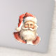Etiqueta de contorno com uma ilustração fofinha do estilo retrô. Papai Noel com uma barba branca e arbusta vestindo seu terno vermelho tradicional.