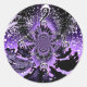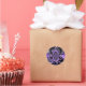Roxo e preto, notas de música com imagens de pessoas festejando em uma reunião.