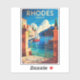 Rodes retro vetor viagem design. Rodes, a maior das ilhas Dodecanesas da Grécia, é conhecida pelas suas zonas de praia, e ruínas antigas.
