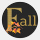 design de outono/outono bonito apresenta a letra maiúscula "F" com preenchimento de xadrez castanho/castanho ouro e uma camada de folhas de cor laranja-acastanhada, sobre fundo preto