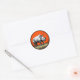 Representação estilizada de um rinoceronte apresentado em formato circular. O rinoceronte é exibido numa pose dinâmica, mostrando sua proeminente buzina e seu corpo robusto. O fundo é uma cor laranja vívida, que contrasta com as bordas pretas do círculo, criando um efeito visual impressionante. O chão debaixo do rinoceronte é ilustrado com detalhes sutis, parecendo uma paisagem texturizada. Ao redor do rinoceronte estão arbustos espinhosos ou vegetação estilizada. O estilo geral combina realismo com talento artístico, produzindo uma composição atraente e impactante.