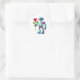 Um robô animado e adorável ao estilo cartoon é a peça central dessa imagem, projetada com cores brilhantes e vibrantes. Ele segura uma rosa vermelha solteiro delicadamente em sua mão metálica, simbolizando amor e afeto. O design geral é brincalhão, encantador, e perfeito para captar atenção, fazer ideal para o Dia de os namorados. pelos 'martinspixs'.