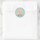 Obrigado de festa de aniversário de patinagem verde de faixa branca que você cola com uma ilustração retrorinspirada de um skate de rolo cor de laranja pastel. Adicione uma obrigado a você e ao nome dela, tipografia azul-lacre escura.
