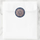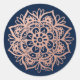 Este adesivo apresenta um belo design de flor mandala rosa dourado claro em azul marinho escuro. É uma bela adição ao envelope do convite de casamento ou decoração para adicionar a qualquer papelaria.
