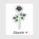 Rosa preto simbólico, desenhado artisticamente, com caules verdes e folhas sobre fundo branco. Rosa preto.