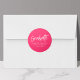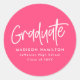 Adicione um toque de na moda aos envelopes de graduação e bolsas de favoritos de festa de formatura com adesivos personalizados de graduação. Os adesivos de graduação apresentam "formando" em um script manuscrito com um fundo rosa quente ou cor de sua escolha. Personalize os adesivos de graduação rosa-quente adicionando o nome do formando, o nome da escola e o ano de graduação.
