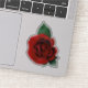 vinheta vinílica de 3" x 3" com corte personalizado, com uma imagem de uma bela rosa vermelha no cheio. Consulte a marca de favor correspondente. Ver toda a coleção de adesivos do Dia das Mães nos CONVITES | Seção Stickers & Labels