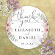 Elegantes adesivos de agradecimento com coração floral de rosas e escrita personalizada com seus nomes e data especial. Desenhado por Thisisnotme©
