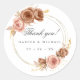 Elegante obrigado redondo que você cola, com rosas de aquarela e uma coroa moderna, com tema de cor de champanhe de chocolate marrom e rosa-pincel. Imitação de folhas em relevo e decoração de folha de ouro, por favor note: não é folha de ouro real.