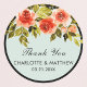 Obrigado de casamento elegante que vocês colam com rosas de cor d'água vermelha, folhagem verde em um fundo de menta.