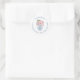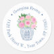 Este design de adesivo flexível apresenta um vaso de gengibre azul marinho e branco cheio de rosas cor-de-rosa e folhagens, com uma borda de texto circular. Mostrado aqui para um rótulo de endereço de devolução, mas todos os campos de texto são flexíveis para suas necessidades, por exemplo, poderia ser um adesivo de agradecimento.
