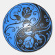 Este lindo design yin yang apresenta dois rosas tribais estilizados. Intriciar espirais azuis e pretas decoram ambos os lados deste símbolo tradicional criando um padrão delicado. As duas flores fluem do fundo da lágrima de cada lado com folhas crescendo a partir do caule. Este Yin Yang único faz um design de na moda e espantoso.