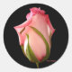 Vinhetas com uma armação de uma linda rosebuda rosa sobre um fundo preto. Muito bonito nas costas dos cartões ou convites! Fotografia digital por Sue Melvin