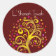 "L’ Shanah Tovah." Uma folha de ouro falso gráfica com cor-de-rosa cintilante, laranja, estrela vermelha de David e "folhas" pontiagudas sobre fundo burgundy, ajuda-o a instigar as festividades do Ano Novo Judeu, Rosh Hashanah. Sinta o calor e a alegria da temporada de festas sempre que você usa este adesivo moderno, espantoso, na moda Rosh Hashanah. Escolha de forma quadrada ou redonda, em dois tamanhos. Use isto para alguém especial! Você pode personalizar facilmente este adesivo de Rosh Hashanah. Por favor, me mande mensagens com quaisquer perguntas ou solicitações.