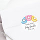 Este adesivo de bebê borrifador bonito apresenta rosquinhas cor-de-água rosa, azul e amarela. Perfeito para uma celebração de bebê neutra em termos de gênero. Facilmente personalizável. Porque nós criamos a nossa trabalho de arte, você não encontrará esta imagem exata de outros designers. Original Watercolor © Michele Davies.