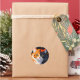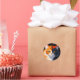 Um rosto bonito de gato com três cores: laranja, branco e preto. O gato tem olhos grandes, redondos, um nariz pequeno, e uma boca pontiaguda. O fundo é preto. O presente perfeito para qualquer amante de gatos.