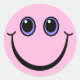 Este rosto cor-de-rosa tem um grande sorriso feliz e olhos roxos. A cor rosa pode ser personalizada.