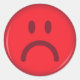 Adesivos redondos personalizados com um rosto vermelho e infeliz. Um verde, feliz no mesmo estilo também está disponível.