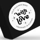 Adesivo de negócios moderno feito à mão com amor com fontes de estilo retro groovy em preto e branco. Você pode adicionar o nome da sua empresa e criar seus próprios rótulos personalizados de embalagem para negócios. Adicione o toque final aos seus pedidos com este design de adesivo de estilo nostálgico e moderno Feito Com Amor.