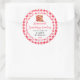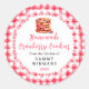 Este adesivo divertido e caprichoso apresenta biscoitos de cranberry em uma toalhinha de renda branca e fundo de gingham vermelho. É perfeito para etiquetar seus produtos caseiros. O texto combina fontes manuscritas e serifadas para um visual elegante e moderno.