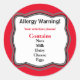 Etiquetas de aviso de alergia com desenho do personagem de desenho animado. Indicação do ingrediente alérgico à comida.