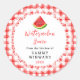 Esta bengala divertida e branca apresenta uma melancia em um lugar branco sujo e fundo vermelho de gingham. É perfeito para rotular seus produtos caseiros. O texto combina o script manuscrito e as fontes serif para uma aparência na moda e moderna.