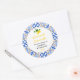 Este adesivo divertido e caprichoso apresenta limões cítricos em aquarela e folhagens em um fundo de azulejo mediterrâneo azul. É perfeito para etiquetar seus doces caseiros. O texto combina fontes manuscritas e serifadas para um visual elegante e moderno.
