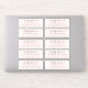 Fácil de personalizar, nomes e endereços / etiquetas de endereço de casamento individuais para convidados. Essas etiquetas chic, modernas e simples de endereços de convidados de casamento destacam o texto gentilmente entregue na caligrafia com script chic e seus nomes de convidados de casamento na tipografia moderna em um fundo rosa pastel. Basta adicionar os nomes e endereços dos convidados do casamento. Desenvolvido exclusivamente para você pelo Happy Dolphin Studio. Se precisar de ajuda ou produtos correspondentes, entre em contato conosco em happydolphinstudio@outlook.com. Estamos felizes em ajudá-lo a fazer seu casamento o dia mais bonito!