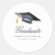 Rótulo de endereço com uma ilustração de um chapéu de formatura em aquarela com borla em folha de ouro. Perfeito para convites de festa de formatura, anúncios ou cartões de agradecimento.