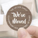 Adicione um toque de finalização de na moda para mover envelopes de lançamento com etiquetas de endereço de retorno personalizadas. Toda a redação deste modelo pode ser personalizada. O design moderno estilo de fazenda apresenta uma caligrafia elegante de escrita manual e uma simples tipografia clássica em círculo. Estes selos de envelopes fazem uma adição elegante para trocar cartões de endereço e convites para o lar, quando você apresenta amigos e família à sua nova casa,