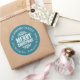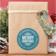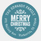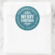 Barato impresso com etiquetas de endereço redondo impresso personalizadas com o nome da sua família e o endereço de retorno. Este design de feriado moderno rústico mostra cartazes assustadores de NATAL MERRY em um fundo azul. Use as ferramentas de design para escolher qualquer cor de fundo e editar fontes e cores de texto para personalizar ainda mais seus rótulos exclusivos de endereço de retorno de feriado.