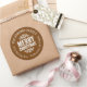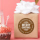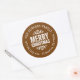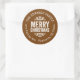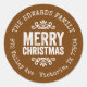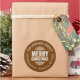 Barato impresso com etiquetas de endereço redondo impresso personalizadas com o nome da sua família e o endereço de retorno. Este design de feriado moderno rústico mostra cartazes assustadores de NATAL MERRY em um fundo castanho. Use as ferramentas de design para escolher qualquer cor de fundo e editar fontes e cores de texto para personalizar ainda mais seus rótulos exclusivos de endereço de retorno de feriado.