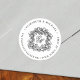 Essas elegantes etiquetas de endereço de volta em preto e branco, clássicas e redondas de casamento, apresentam uma crista monográfica com estilo de vintage com caligrafia de rico para as iniciais da noiva e noiva. Encontre produtos correspondentes na coleção, ou envie-me mensagens através do Zazzle Chat para obter mais produtos e ajustes de design.