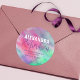 Design de etiqueta de endereço redondo personalizado contemporâneo, exibindo elegantemente seu nome e endereço em um fundo de cor d'água de mistura rosa/roxo/verde. O texto e o fundo são totalmente personalizáveis.
